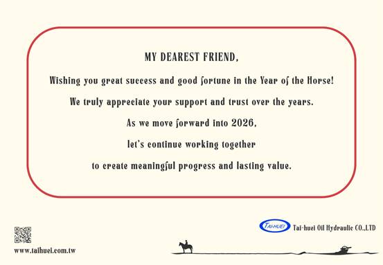 Taihuei Hydraulics wishes everyone with the Horse welcoming the New Spring in joy, harmony leads all endeavors to success.